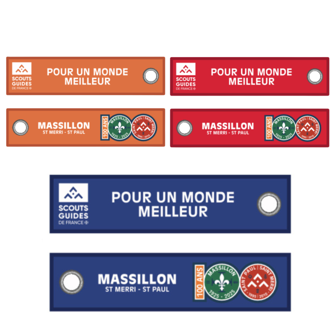 Porte-clés en tissu polyester avec anneau brisé en métal tournant.